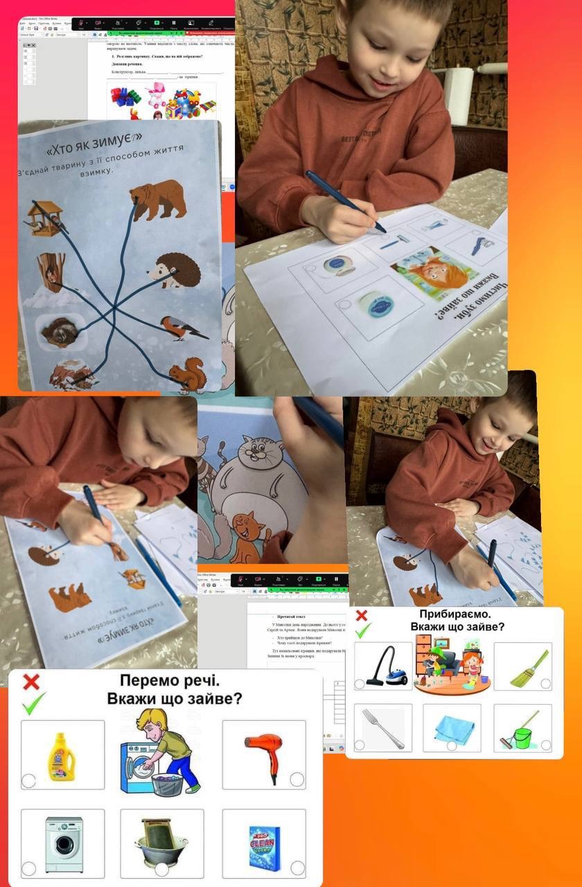 Проведено групове заняття, під час якого діти виконували вправу «Знайди тінь». Ця вправа є ефективним інструментом для розвитку уважності, спостережливості, а також аналітичного та логічного мислення. Мета завдання полягала у правильному співставленні зображень предметів та тварин з їхніми відповідними тінями. Вправа сприяла покращенню концентрації уваги, зорового сприйняття та координації «око-рука».