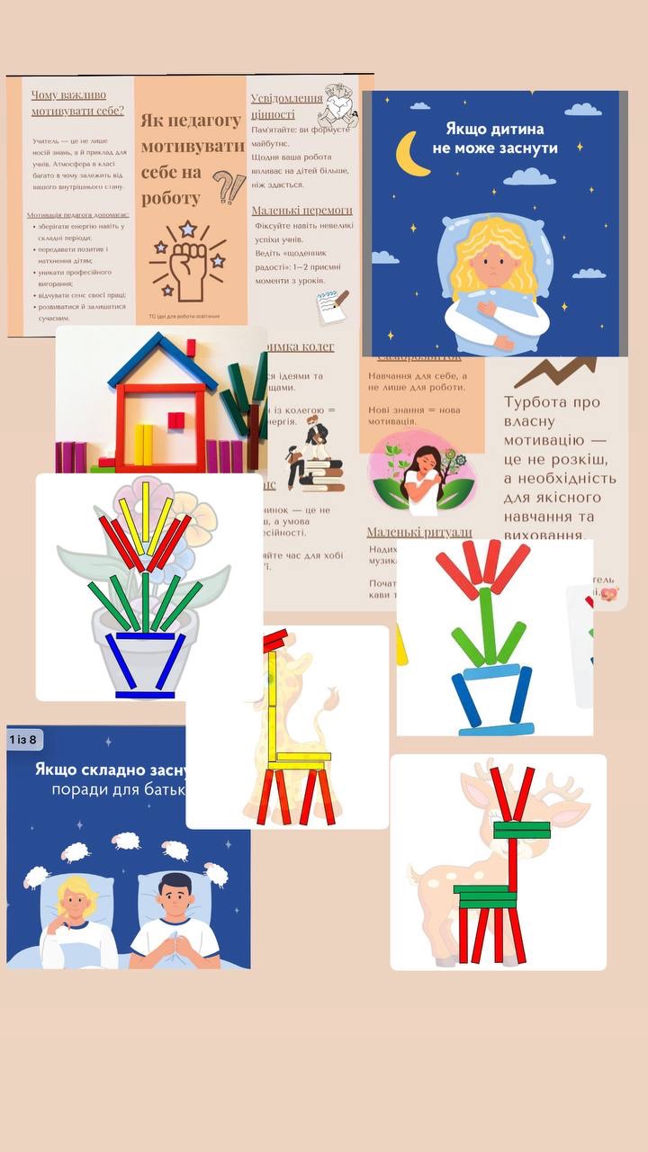 Робота практичного психолога у період з 19.01 по 23.01 була направлена на всебічну підтримку учасників освітнього процесу, починаючи з консультативної зустрічі для вихователів на тему «Як педагогу мотивувати себе на роботу», що мала на меті профілактику професійного вигорання, пошук внутрішніх ресурсів та опанування технік саморегуляції для підвищення зацікавленості в роботі. Паралельно велася просвітницька діяльність серед батьків дітей старшої та різновікової груп, для яких було підготовлено рекомендації «Якщо складно заснути» з метою надання допомоги у налагодженні режиму сну дитини, зниження рівня вечірньої тривожності та формування ритуалів здорового відпочинку. Практичний блок включав корекційно-розвиткову гру з кольоровими паличками, спрямовану на розвиток у дітей дрібної моторики, просторового мислення, уяви, логіки та здатності до аналізу через викладання зображень за зразком. Також психологічний супровід охоплював соціально-емоційний розвиток вихованців під час перегляду мультсеріалу «Іскорки суперсил», мета якого полягала в ознайомленні дітей із важливими життєвими навичками, такими як доброта, дружба, співчуття, сміливість, самоконтроль та готовність допомагати іншим.